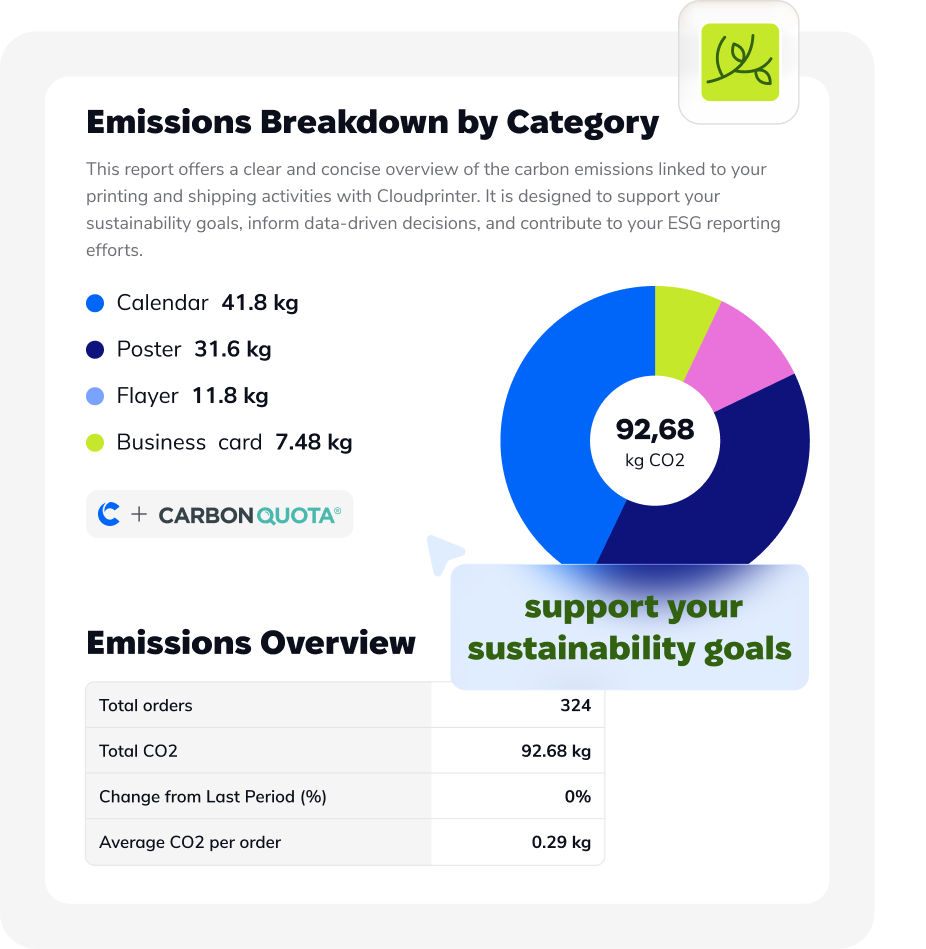 Cloudprinter is committed to reducing environmental impact through smarter technology and local fulfilment. Our collaboration with Carbon Quota enables precise, order-level carbon tracking, empowering our clients to take action with real data.